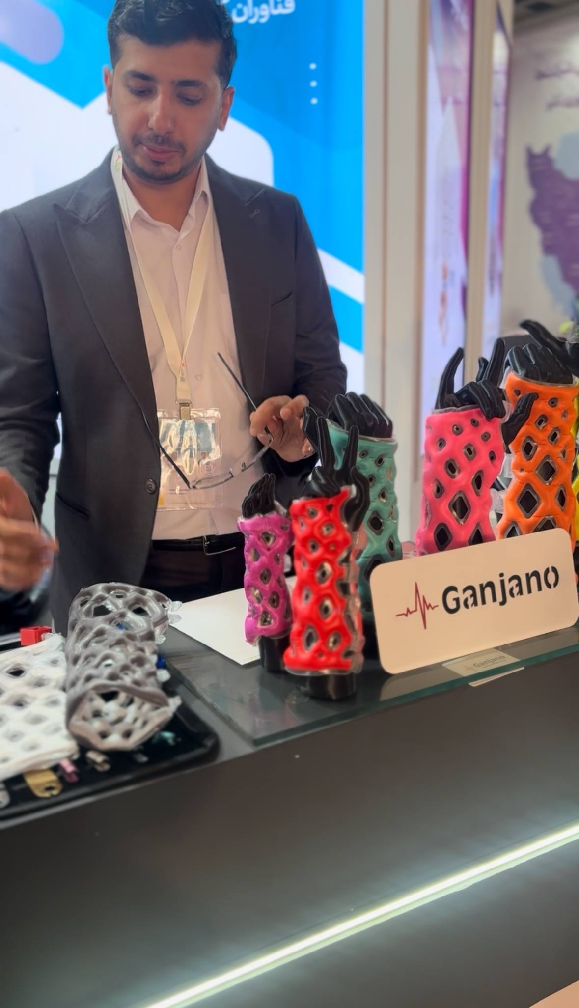 در بخش دیگری از بازدید، آقای جابر سادگی—مدرس نمایشگاه، رابط نهاد ترویجی نانو در هرمزگان، دارنده مدال طلای مسابقات ملی فناوری نانو و فارغالتحصیل دانشگاه هرمزگان—بهعنوان راهنمای علمی همراه گروه بود و با معرفی تخصصی غرفهها، مسیرهای نوآوری و کاربردهای صنعتی فناوری نانو را برای دانشجویان تشریح کرد.