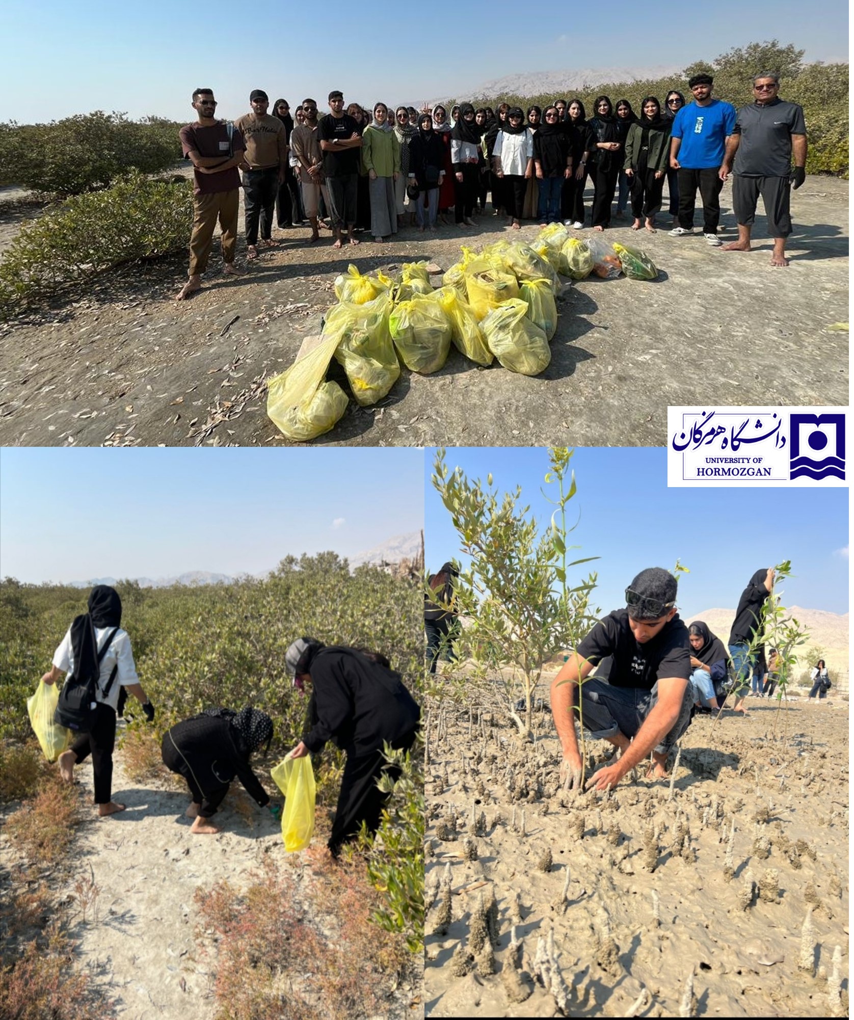کاشت نهال‌های حرا و پاکسازی تالاب خورخوران بندر خمیر با مشارکت دانشگاه هرمزگان